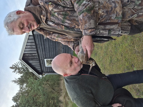 Peters klit gav en sneppe. Eriks første, så han måtte på behørig vis kysse fuglen til paraden. Stort tillykke.